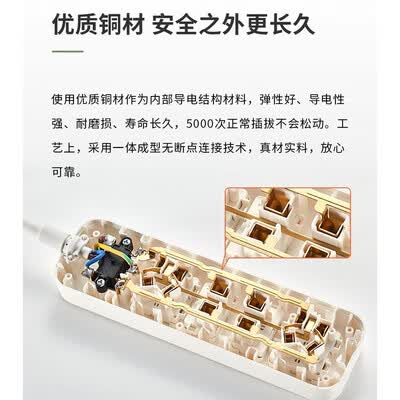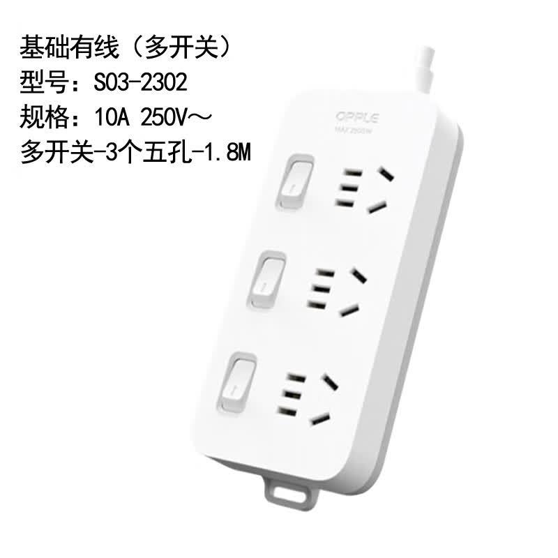 欧普照明(OPPLE)S03-2302 国标基础有线排插10A 250V~ 多开关-3个五孔-1.8M