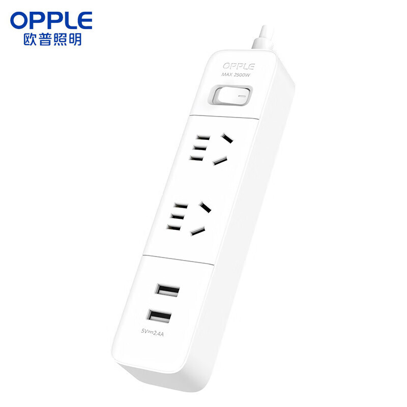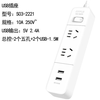 欧普照明(OPPLE)S03-2221 国标基础有线排插10A 250V~USB输出:5V/2.4A 总控-2个五孔+2个USB-1.5M
