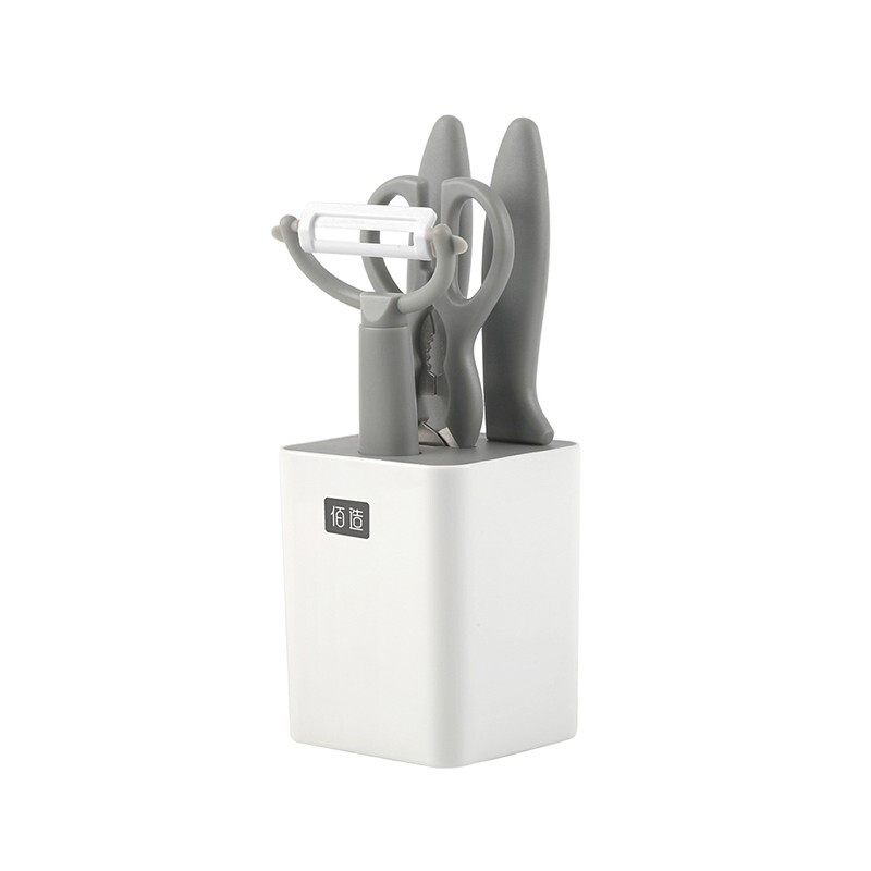 佰造 厨房工具五件套 BZ-BTZ706-5A水果刀削皮刀厨房剪面包刀小工具 浅灰色