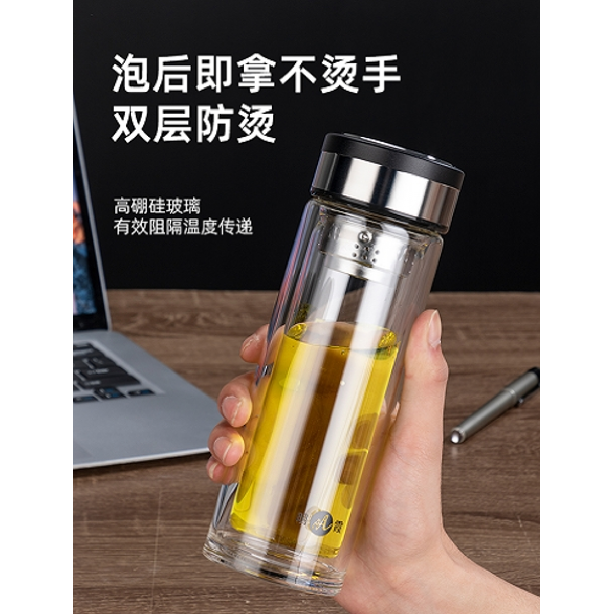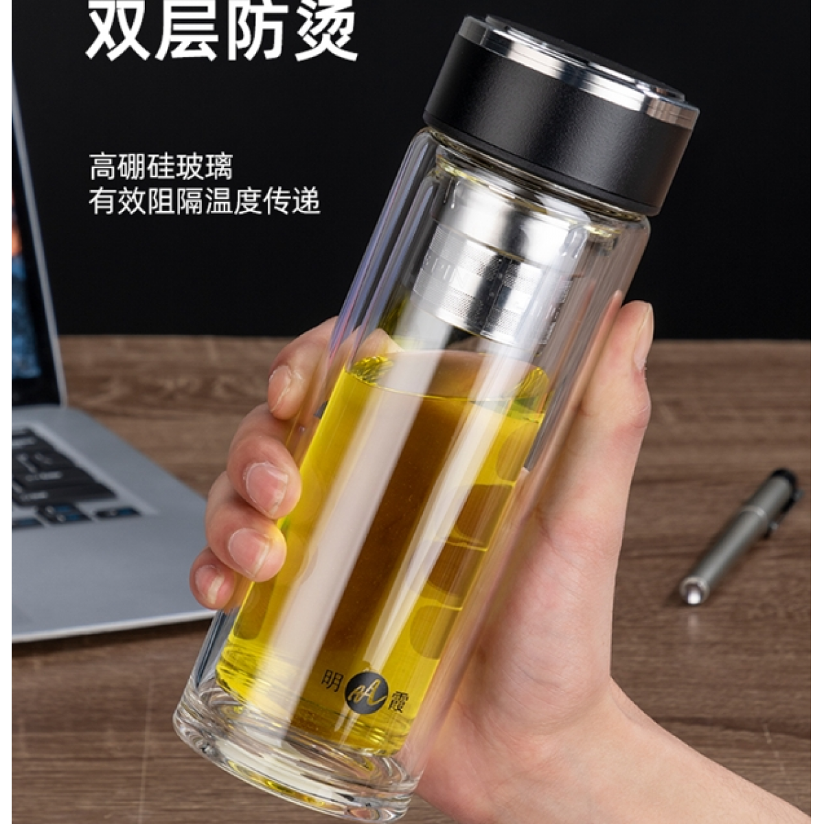 明霞 双层泡茶师玻璃杯 MX3552-320 320ml