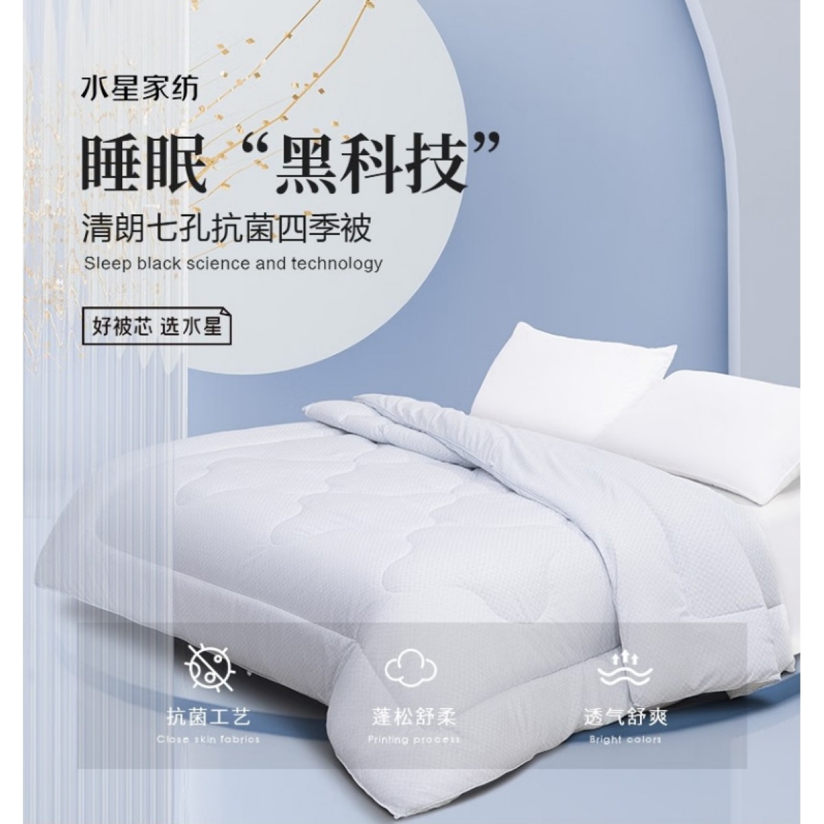 水星家纺 清朗七孔抗菌四季被 1.8米床 220*240cm 125541