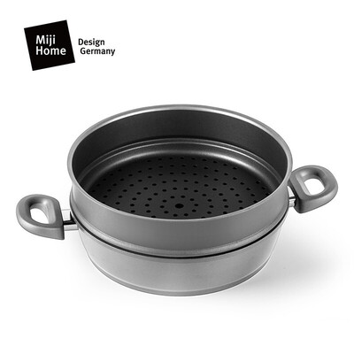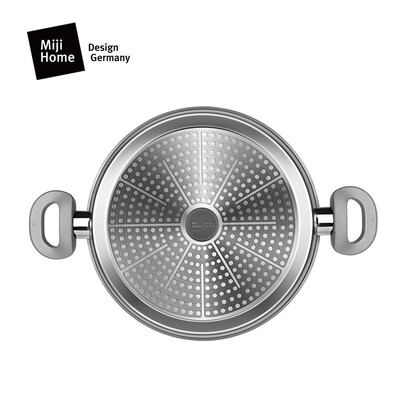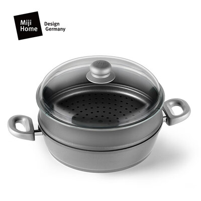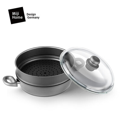 米技(MIJI)星辰系列不粘锅28cm双耳煎炒锅带蒸格套装(高拱玻璃盖)MIJI-STARTS28-BSP/CN