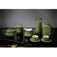 乾唐轩 新石榴茶具 雪花白+鎏金 壶260ml / 茶海310ml / 杯50ml (1壶6杯+茶海)