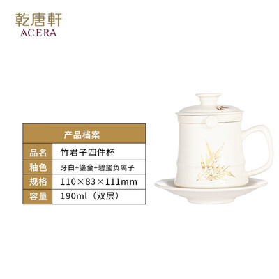 乾唐轩 竹君子泡茶器(1壶4杯)壶 180ml (双层) 杯 55ml