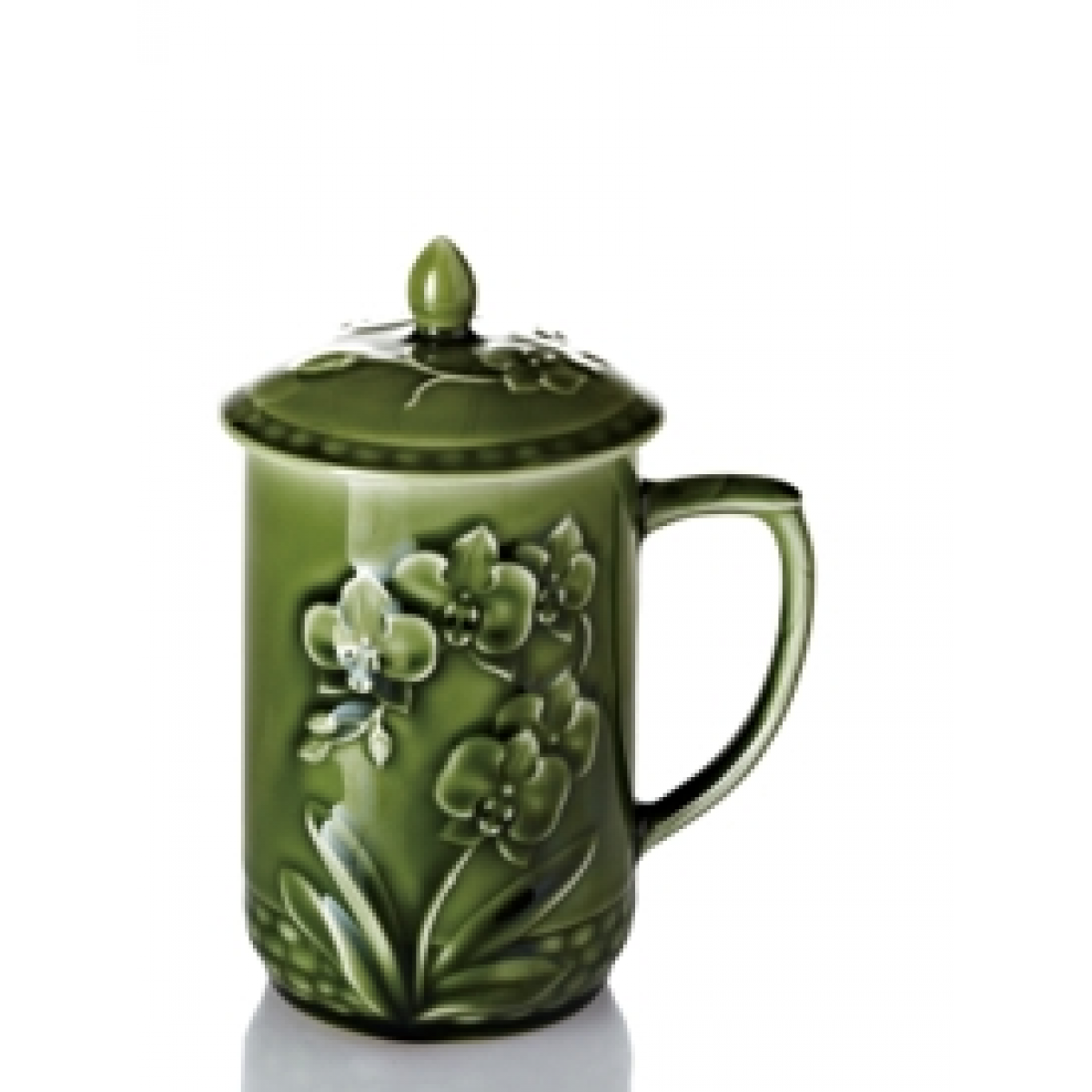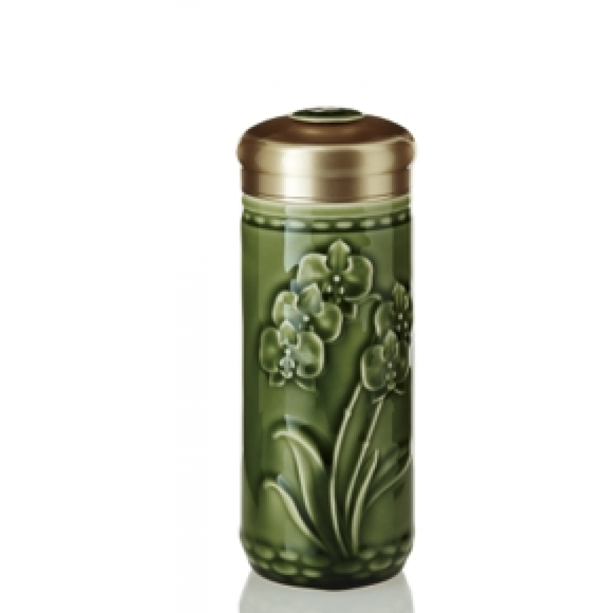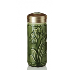 乾唐轩 蝴蝶兰花随身杯 330ml (双层) 耀州绿