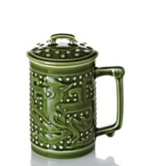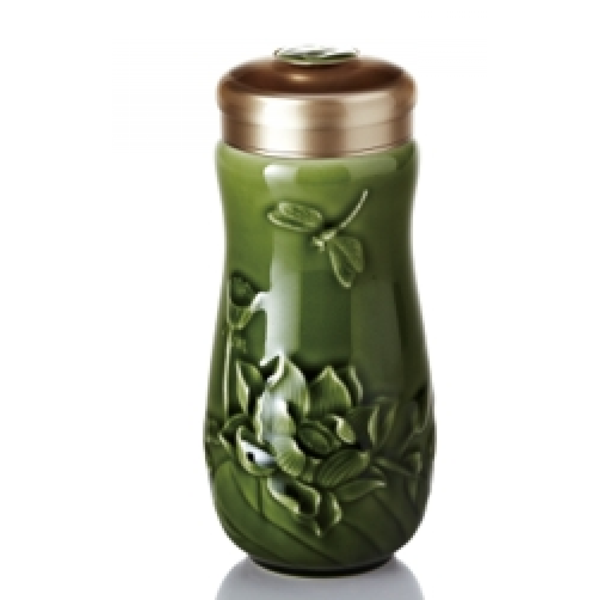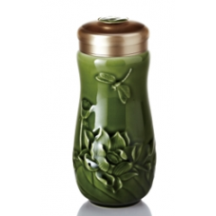 乾唐轩 蜻蜓夏荷随身杯 (大) 330ml (双层) 耀州绿