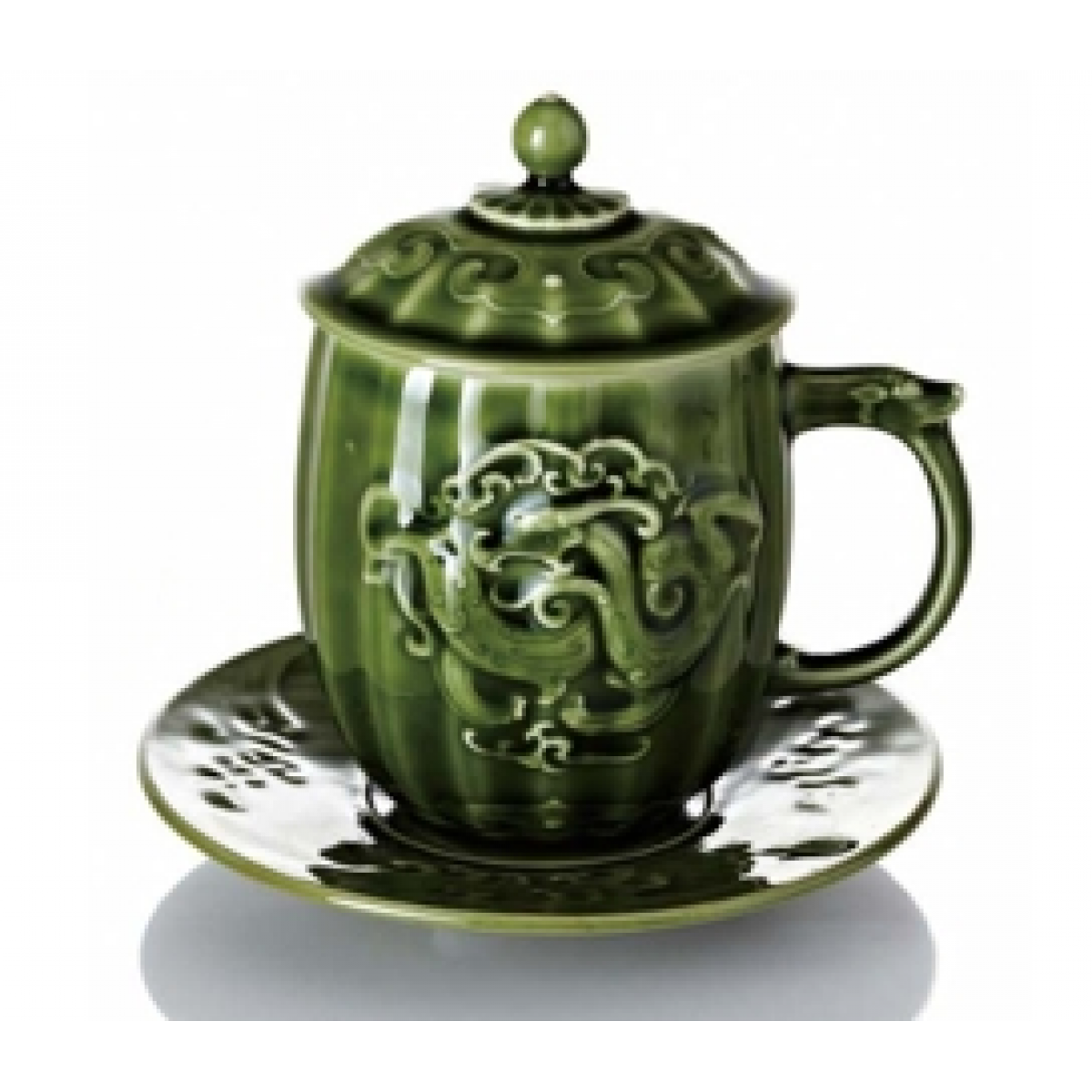 乾唐轩 云龙如意高杯 三件杯 460ml 耀州绿+碧玺负离子