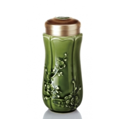乾唐轩 红梅报春随身杯 330ml (双层) 耀州绿