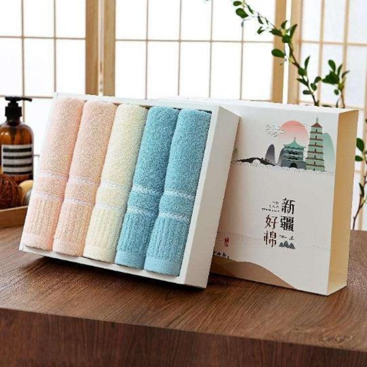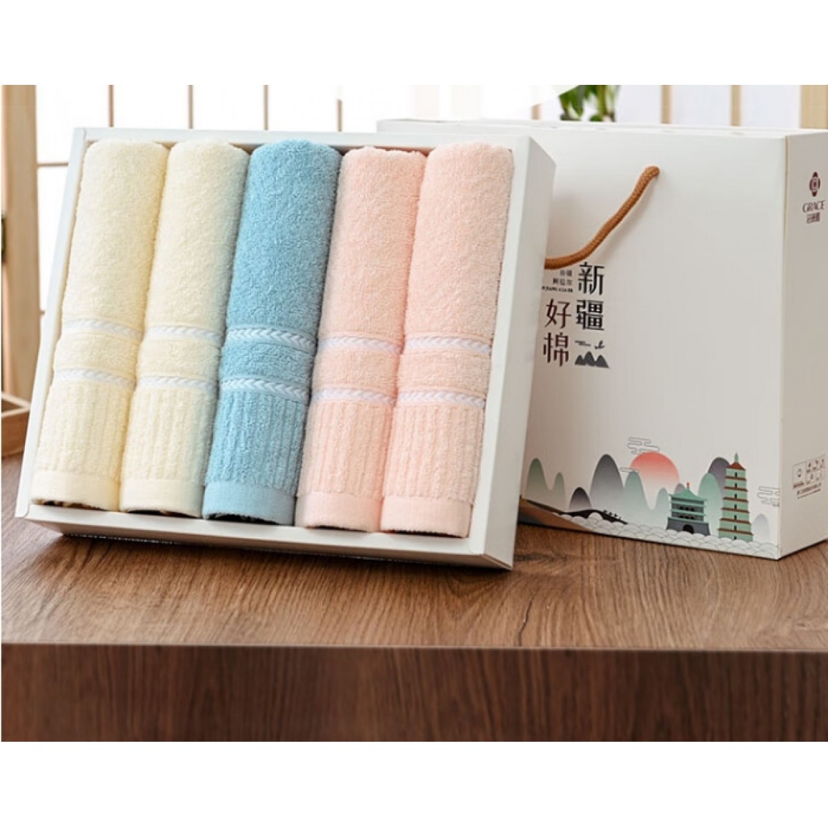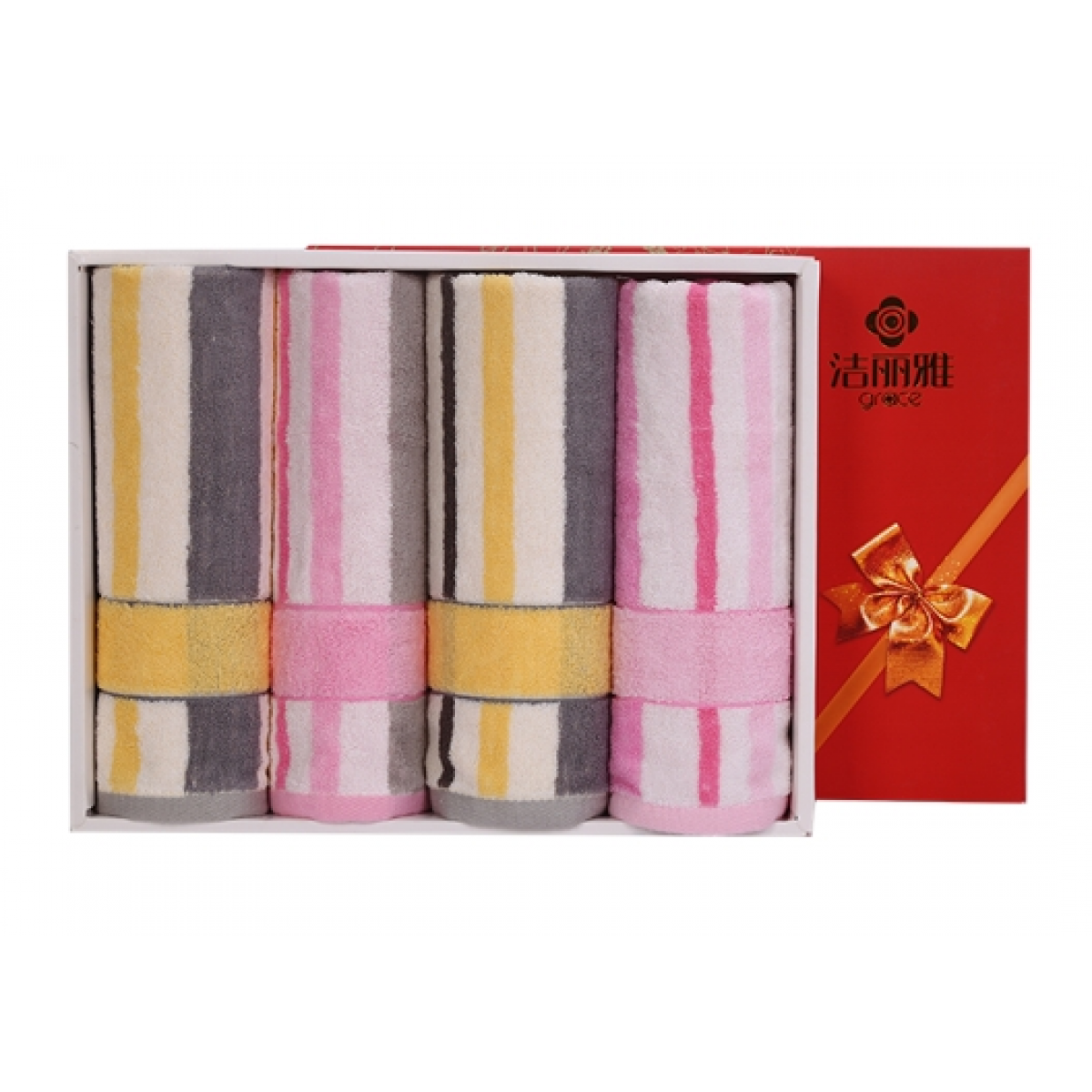 洁丽雅 纯棉喜庆/商务礼盒 四条装强吸水舒适面巾 6454*4 74*34cm (下单备注礼盒样式)