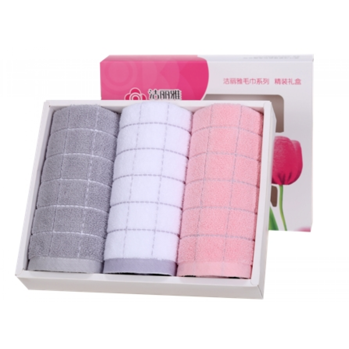 洁丽雅 郁金香礼盒三条装清雅毛巾 6688*3 70*34cm