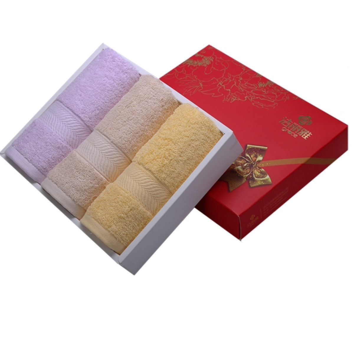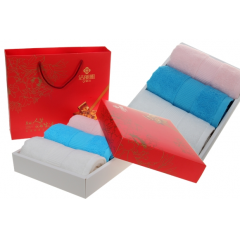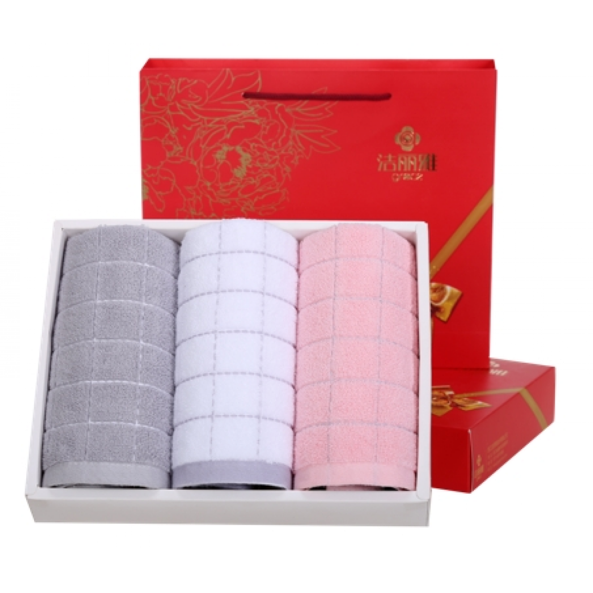 洁丽雅纯棉喜庆 商务礼盒 三条装强吸水舒适面巾 6723 (下单备注礼盒款式)