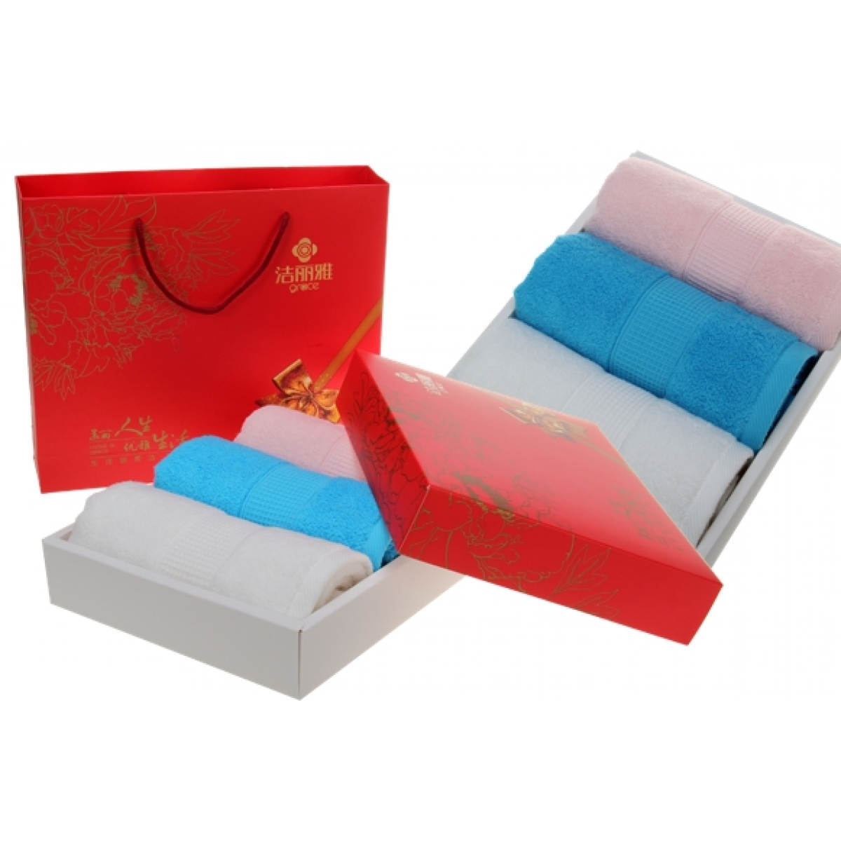 洁丽雅商务、喜庆礼盒三条装清雅毛巾 6688*3 (下单备注礼盒款式)