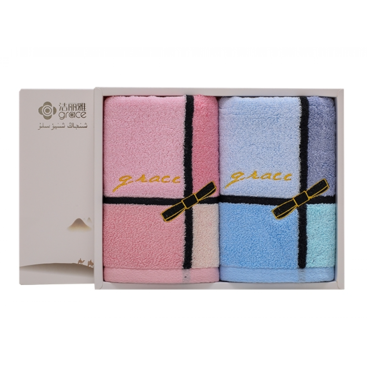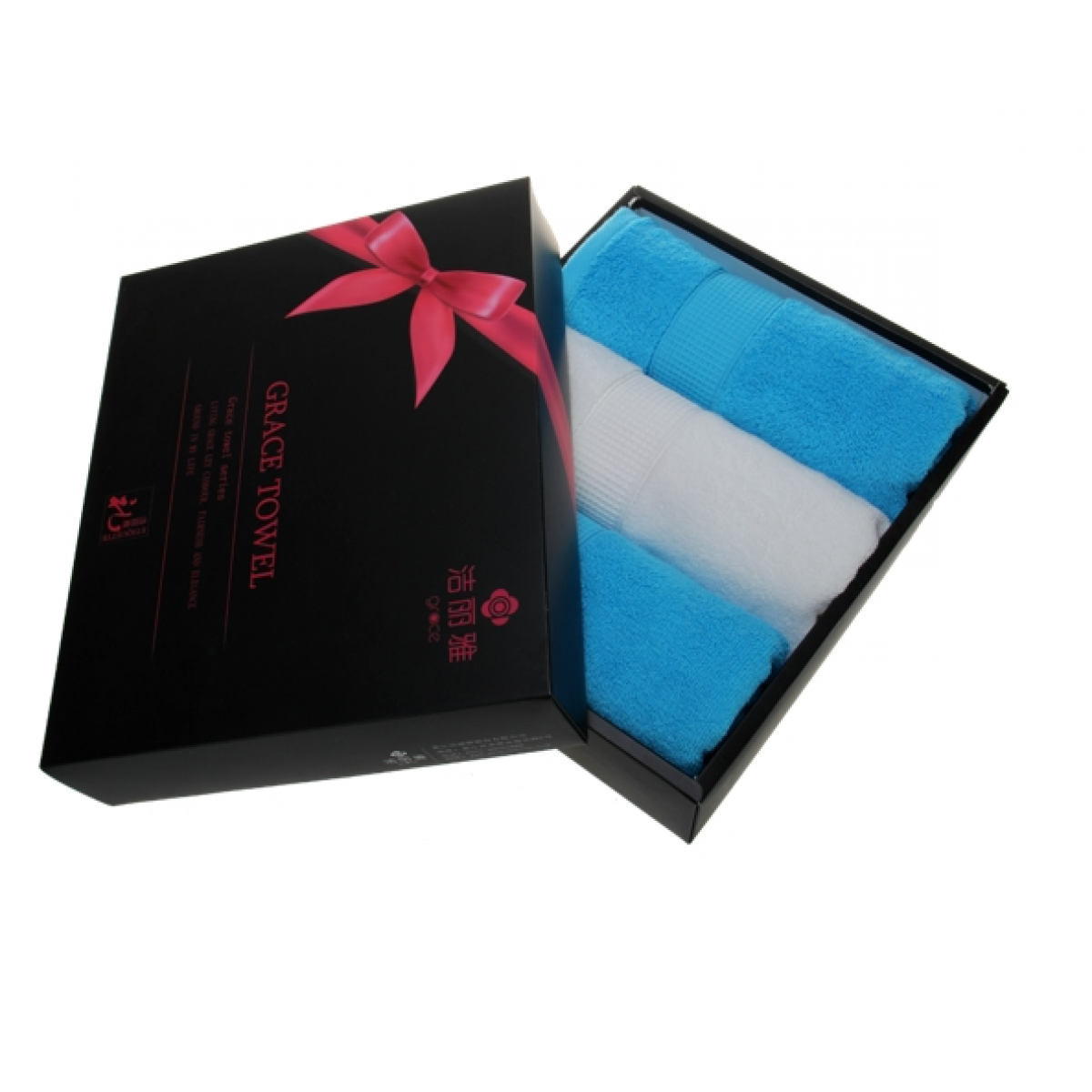 洁丽雅 黑色蝴蝶结礼盒三条装清雅毛巾 6688*3 70*34cm