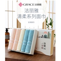 洁丽雅 清柔-5B 70*34cm 70g 纯棉面巾*5条(颜色混发)