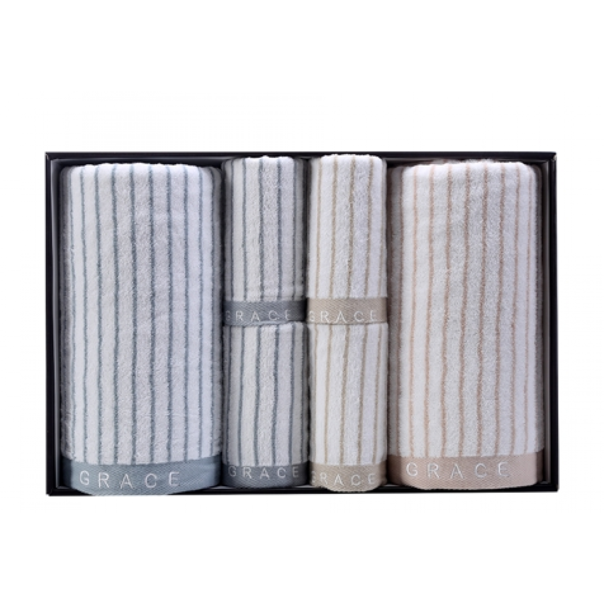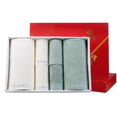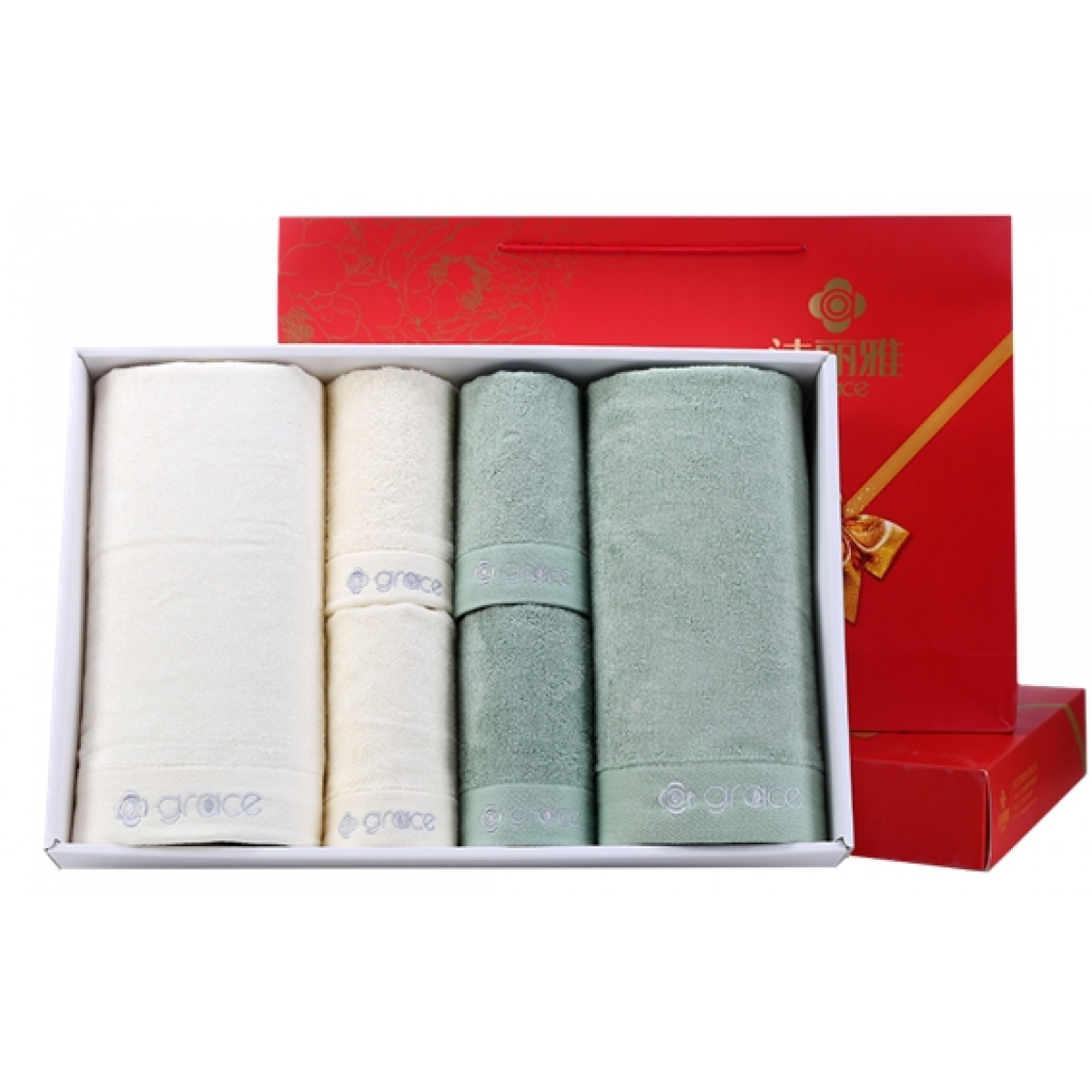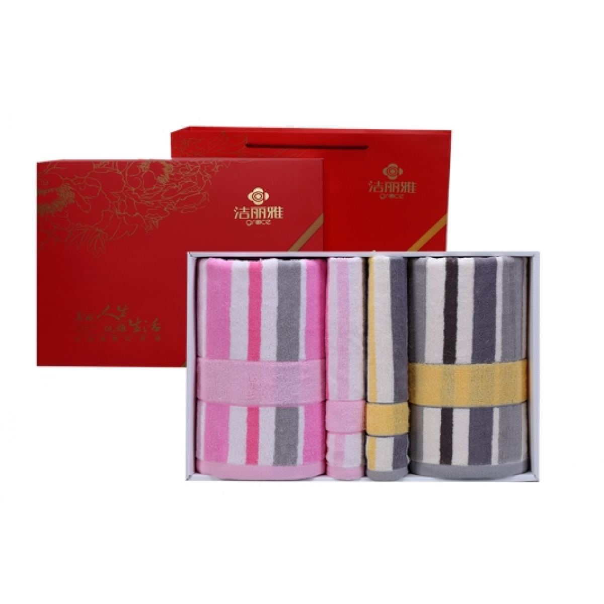 洁丽雅 纯棉喜庆/商务礼盒 四件套装强吸水舒适面巾 6455*2-6454*2(下单备注礼盒样式)