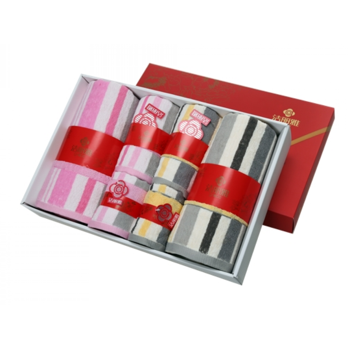 洁丽雅纯棉喜庆/商务礼盒 六件套强吸水舒适面巾 6453*2-6454*2-6455*2 (下单备注礼盒样式)