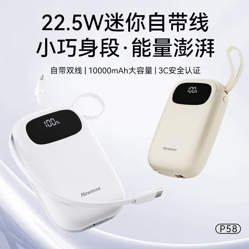 纽曼 10000毫安自带线快充数显移动电源 P58