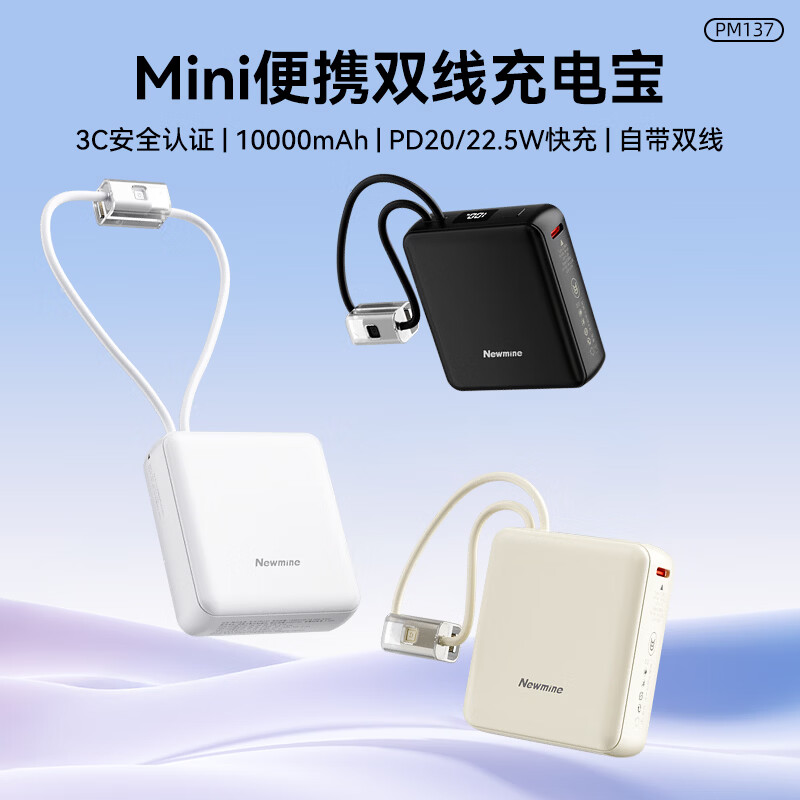 纽曼 10000毫安自带线快充数显移动电源 PM132