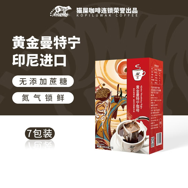 野鼬咖啡 黄金曼特宁咖啡挂耳装 7包*10g/包