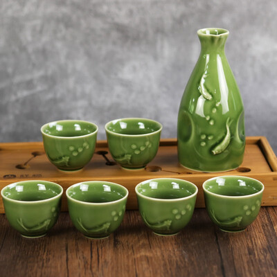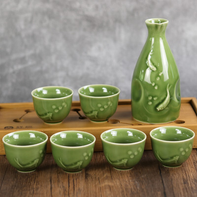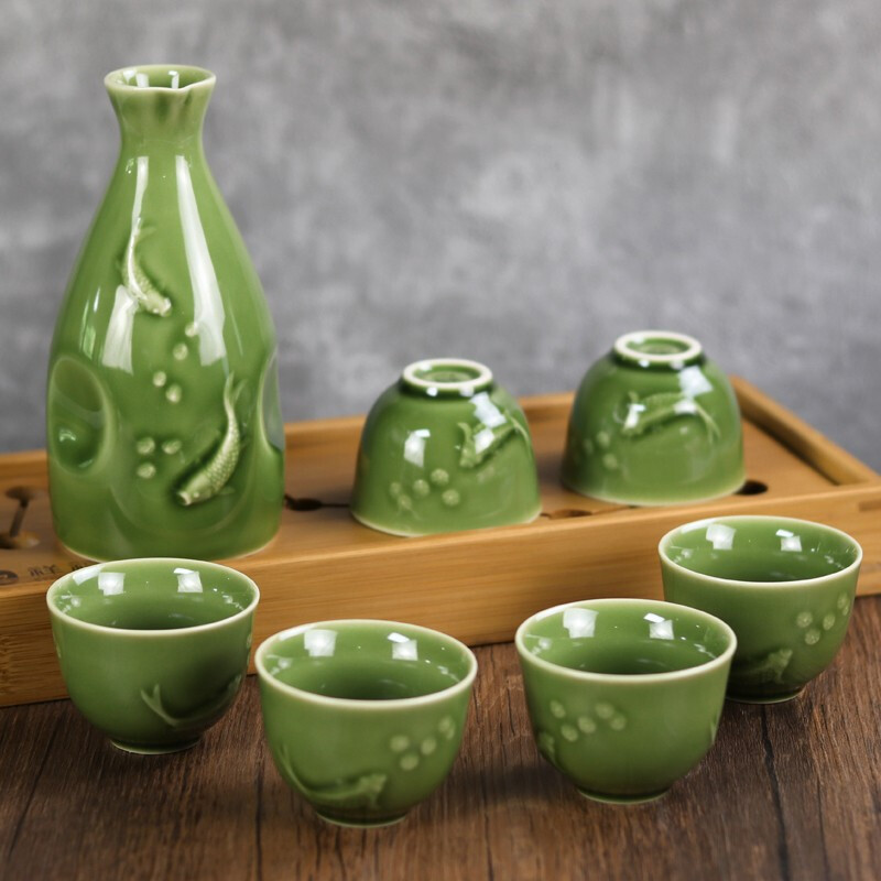 乾唐轩 鱼跃龙门酒器 耀州绿 壶340ml 杯50ml (1壶6杯)