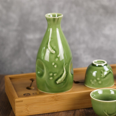 乾唐轩 鱼跃龙门酒器 耀州绿 壶340ml 杯50ml (1壶2杯)