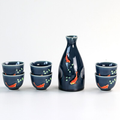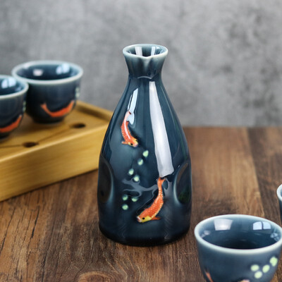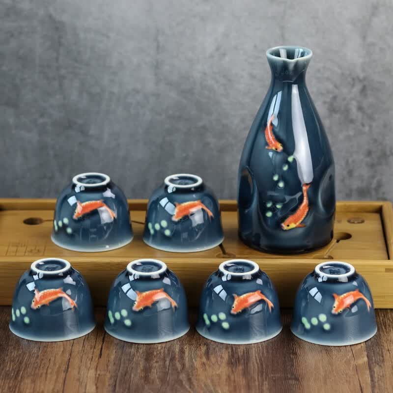 乾唐轩 双鱼酒器 宝石蓝+手工彩釉 壶230ml 杯50ml (1壶6杯)