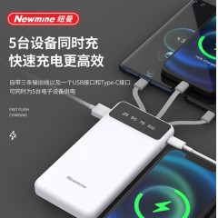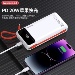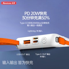 纽曼 20000毫安迷你自带线快充数显移动电源 P268