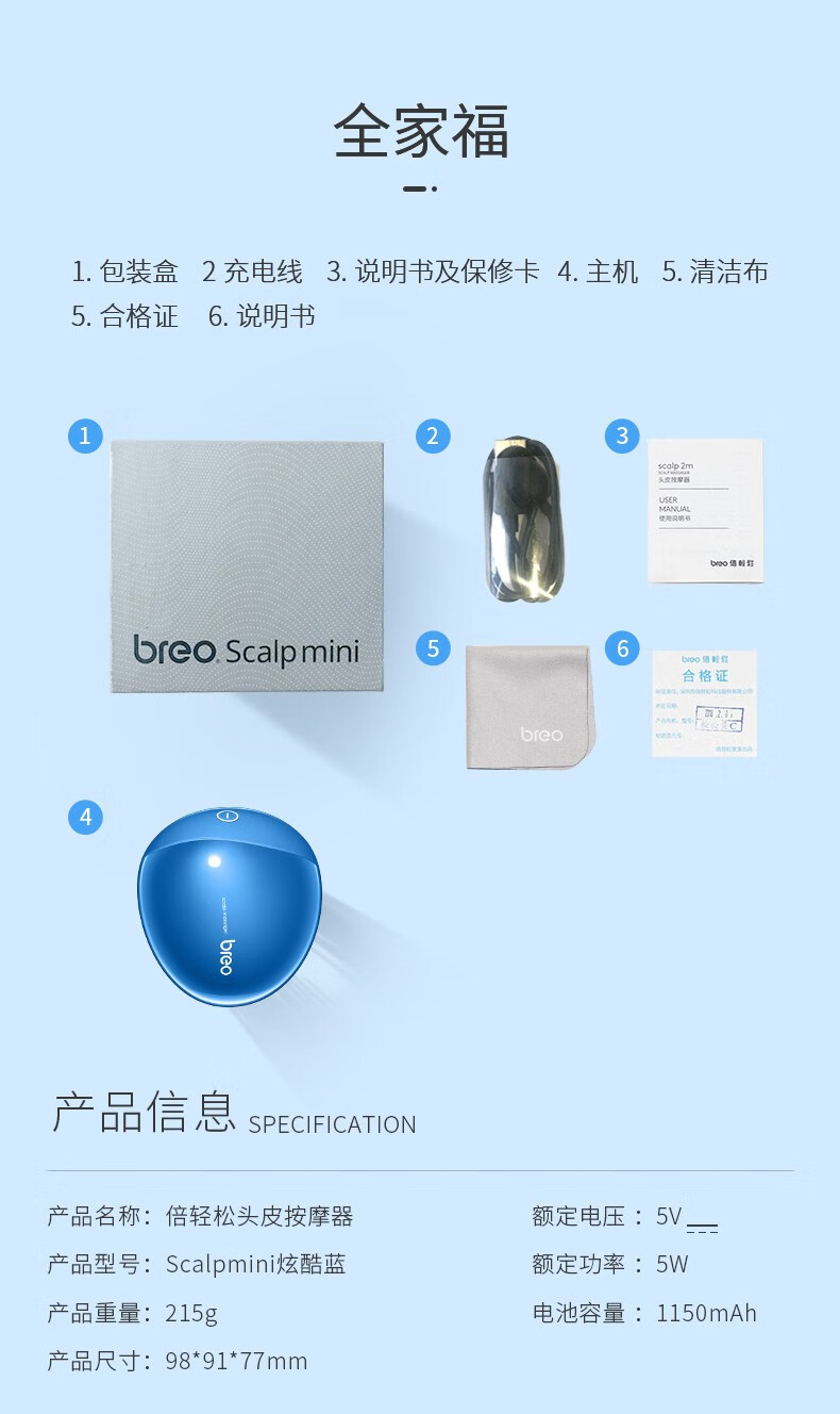 商品名称:倍轻松(breo)迷你头皮按摩器王者荣耀庄周版 scalp mini