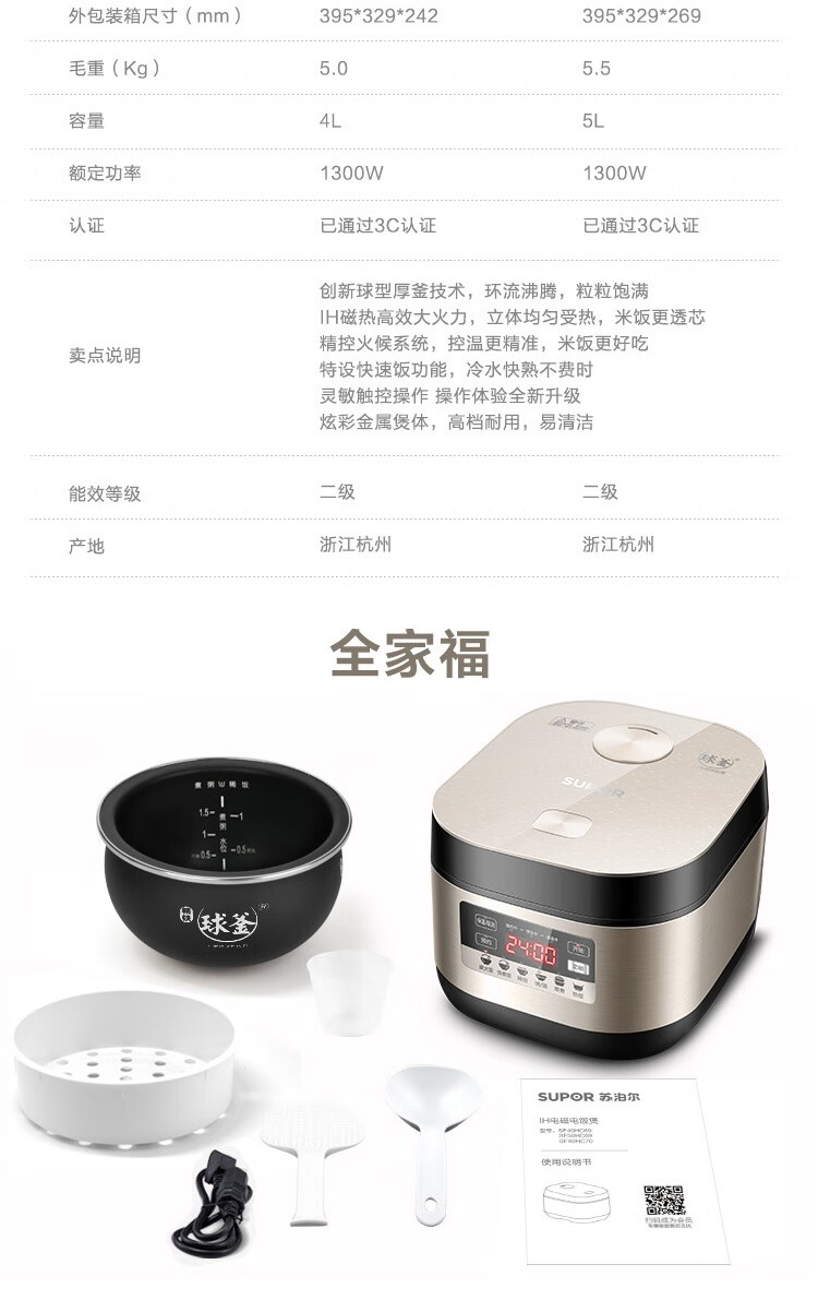 商品名称:苏泊尔(SUPOR)电饭煲 SF40HC69 4L