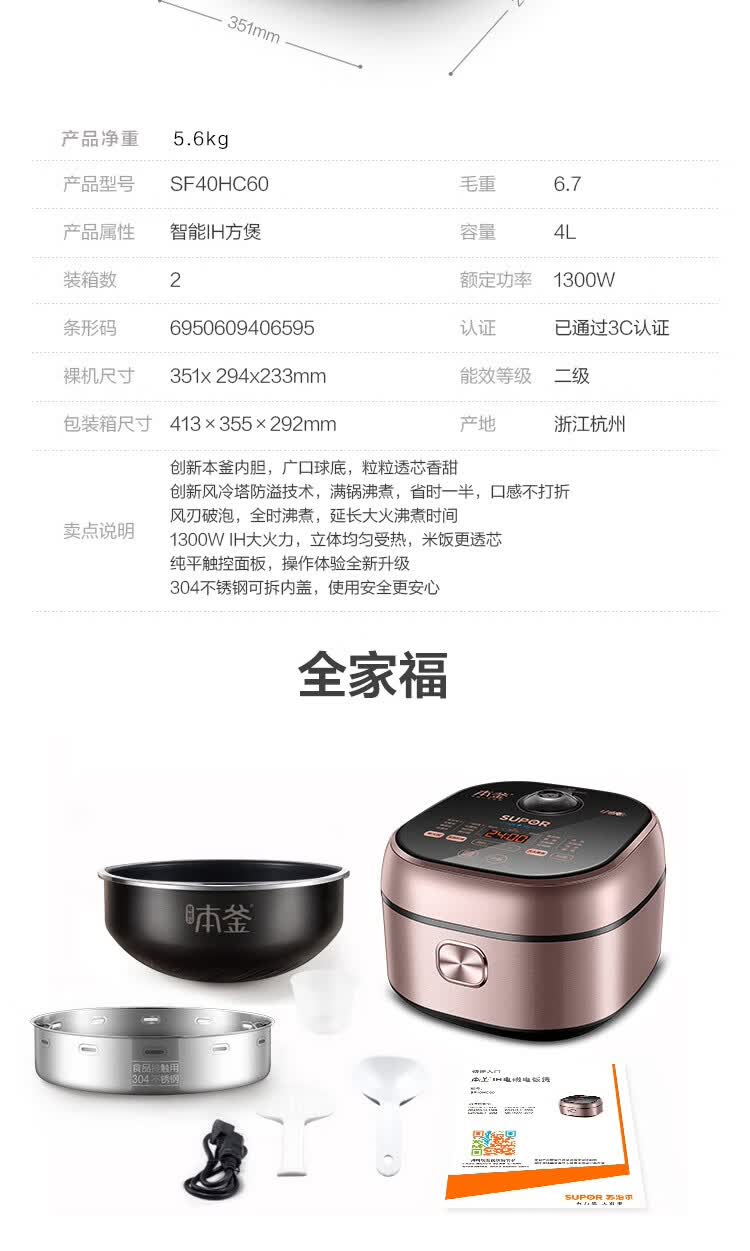 商品名称:苏泊尔(SUPOR)电饭煲 SF40HC60 4L