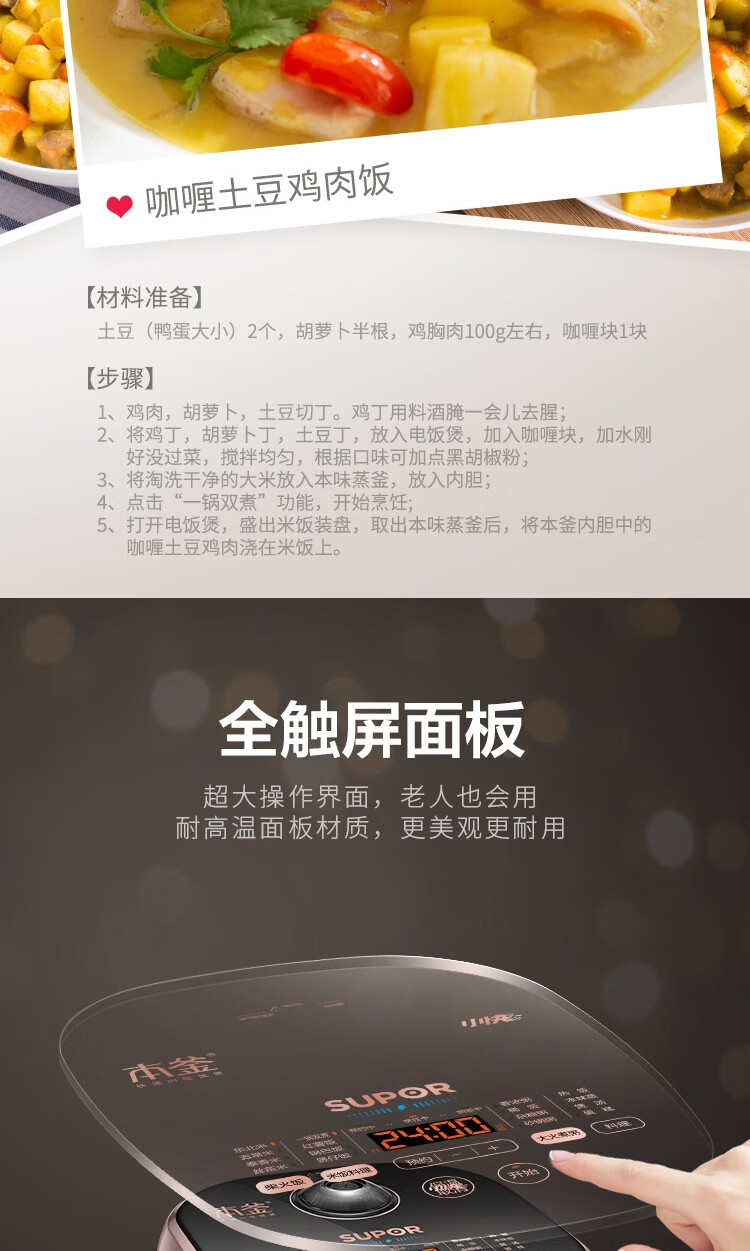 功能 :柴火饭,杂粮饭,上盖可拆洗
