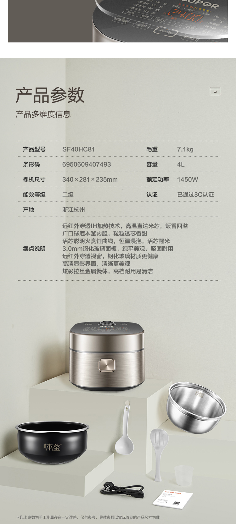 商品名称:苏泊尔(SUPOR)电饭煲 SF40HC81 4L