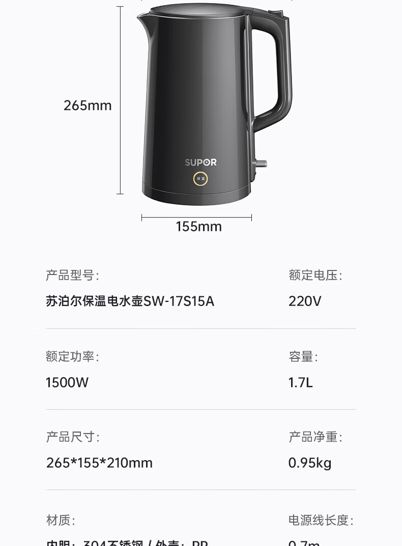 商品名称:苏泊尔(SUPOR) 电水壶 SW-17S15A