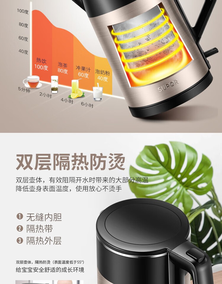 无缝内胆,双层防烫