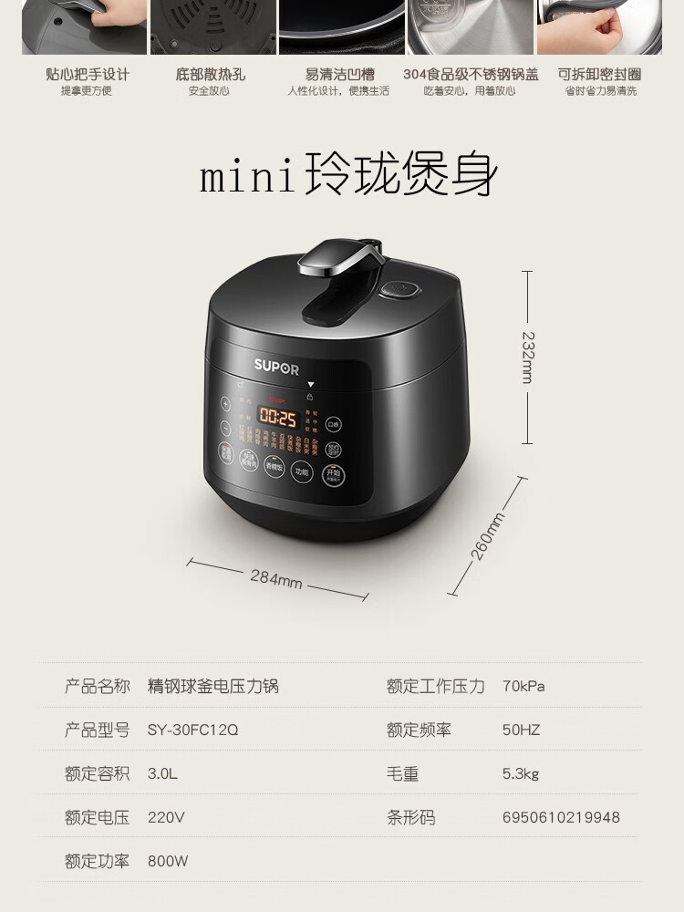 商品名称:苏泊尔(SUPOR )电压力锅 SY-30FC12Q