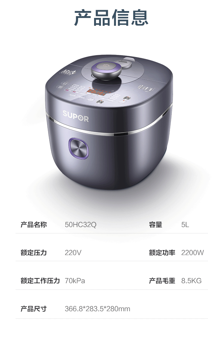 商品名称:苏泊尔(SUPOR)电压力锅 SY-50HC32Q