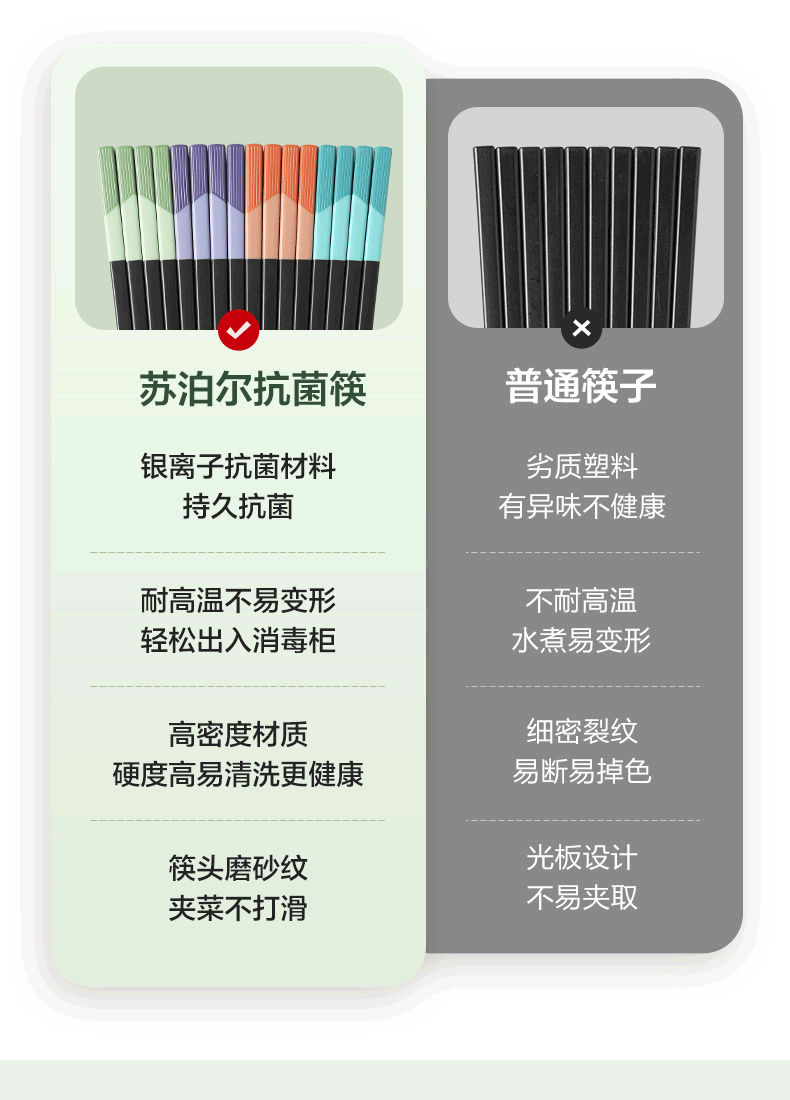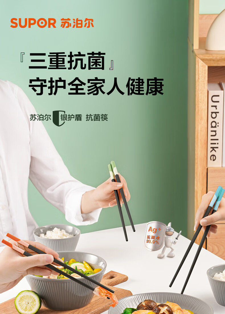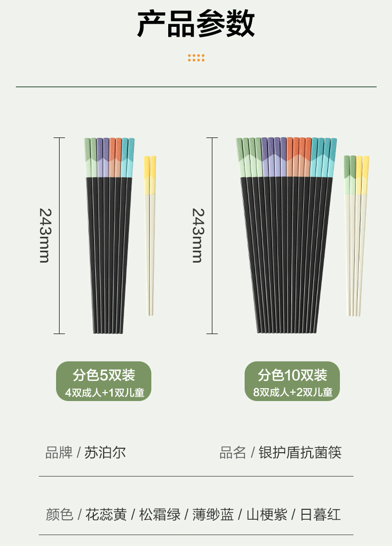 商品名称:苏泊尔 银护盾抗菌筷.家庭5双装 TK2160Q