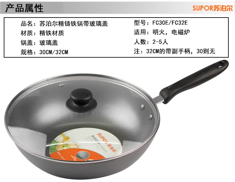 商品名称:苏泊尔(SUPOR)精铸富铁锅•玻璃盖 FC32E 32cm
