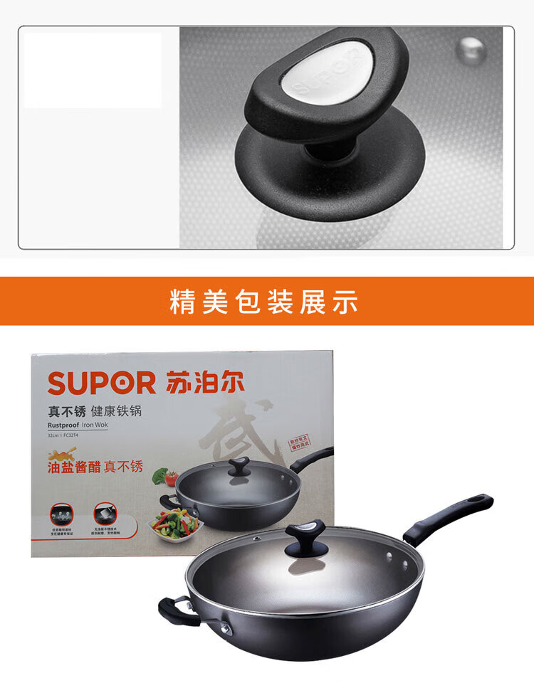 商品名称:苏泊尔(SUPOR)真不锈2代健康铁锅 FC32T4 32cm