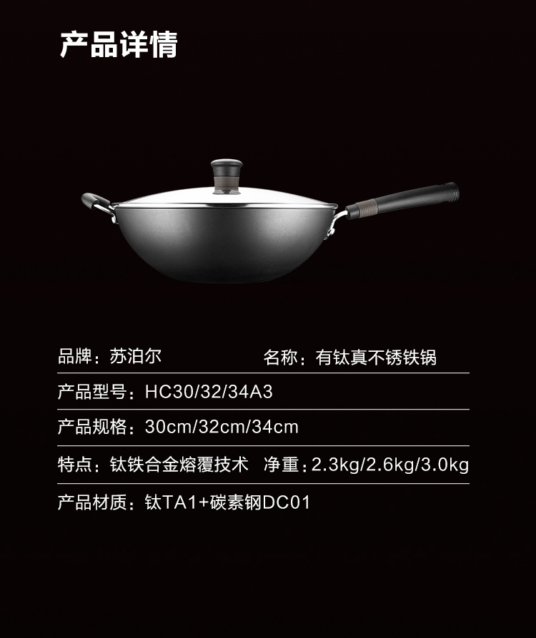 商品名称:苏泊尔(SUPOR)有钛真不锈铁锅 HC30A3 30cm