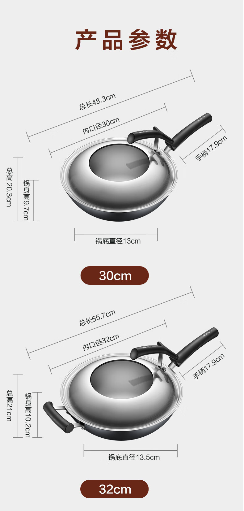 商品名称:苏泊尔 臻铁真不锈炒锅.可立盖 FC30H7 30cm