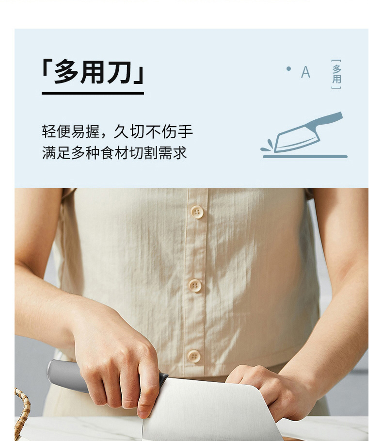 商品名称:苏泊尔(SUPOR)苏泊尔灵动刀具五件套•雅致蓝/优雅棕/深邃灰 TK2119E/TK2120E/TK2121E