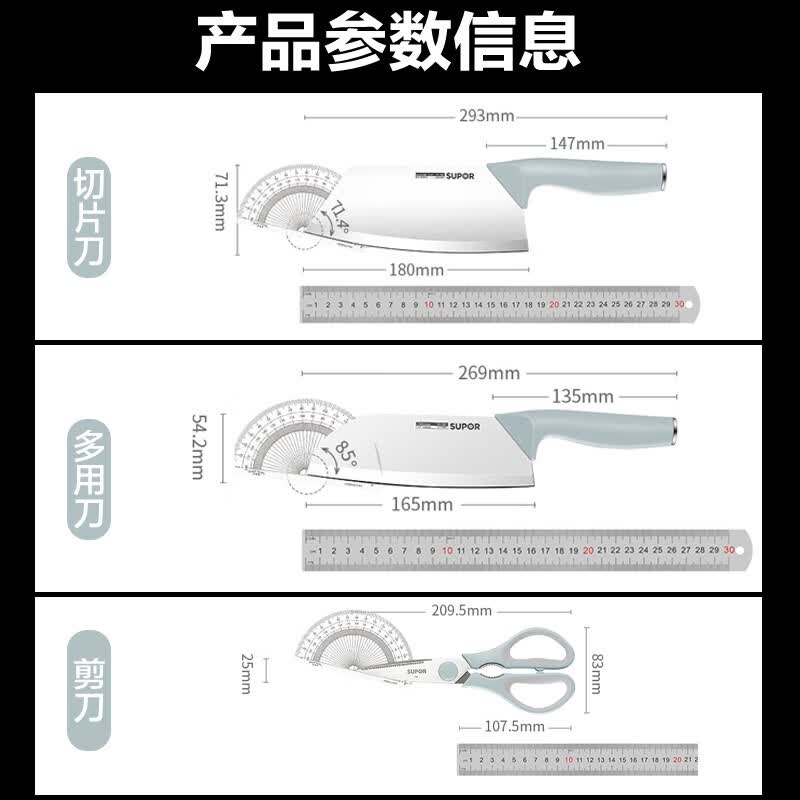 苏泊尔(SUPOR)苏泊尔灵动刀具五件套•雅致蓝/优雅棕/深邃灰 TK2119E/TK2120E/TK2121E