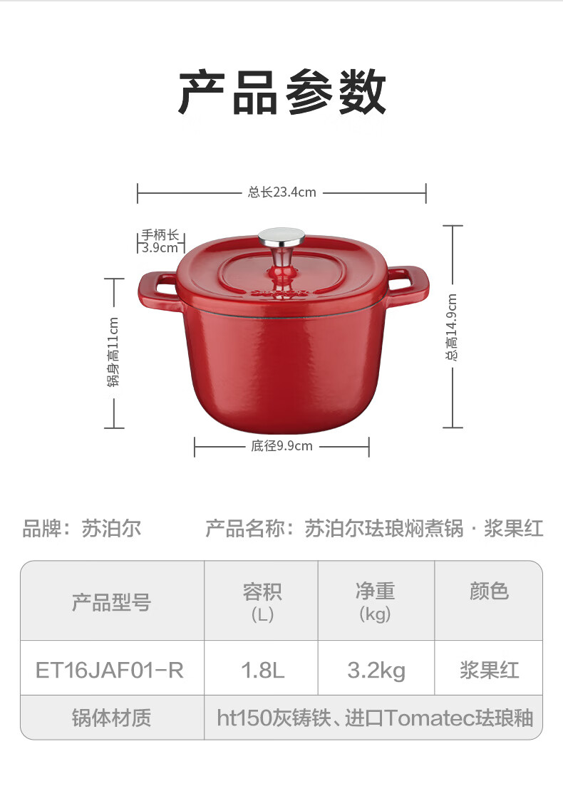 商品名称:苏泊尔 SUPOR 珐琅焖煮锅 · 浆果红 ET16JAF01-R 26cm