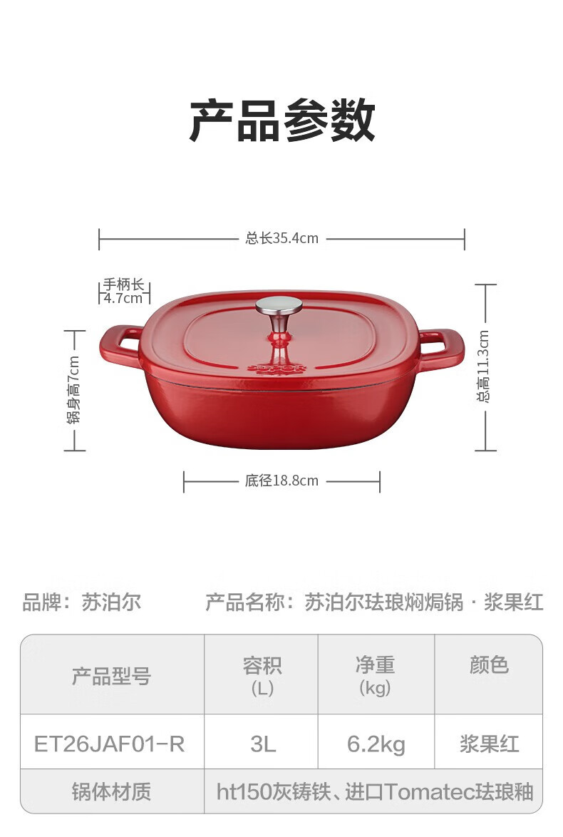 商品名称:苏泊尔(SUPOR)珐琅焖焗锅 · 浆果红 ET26JAF01-R 26cm