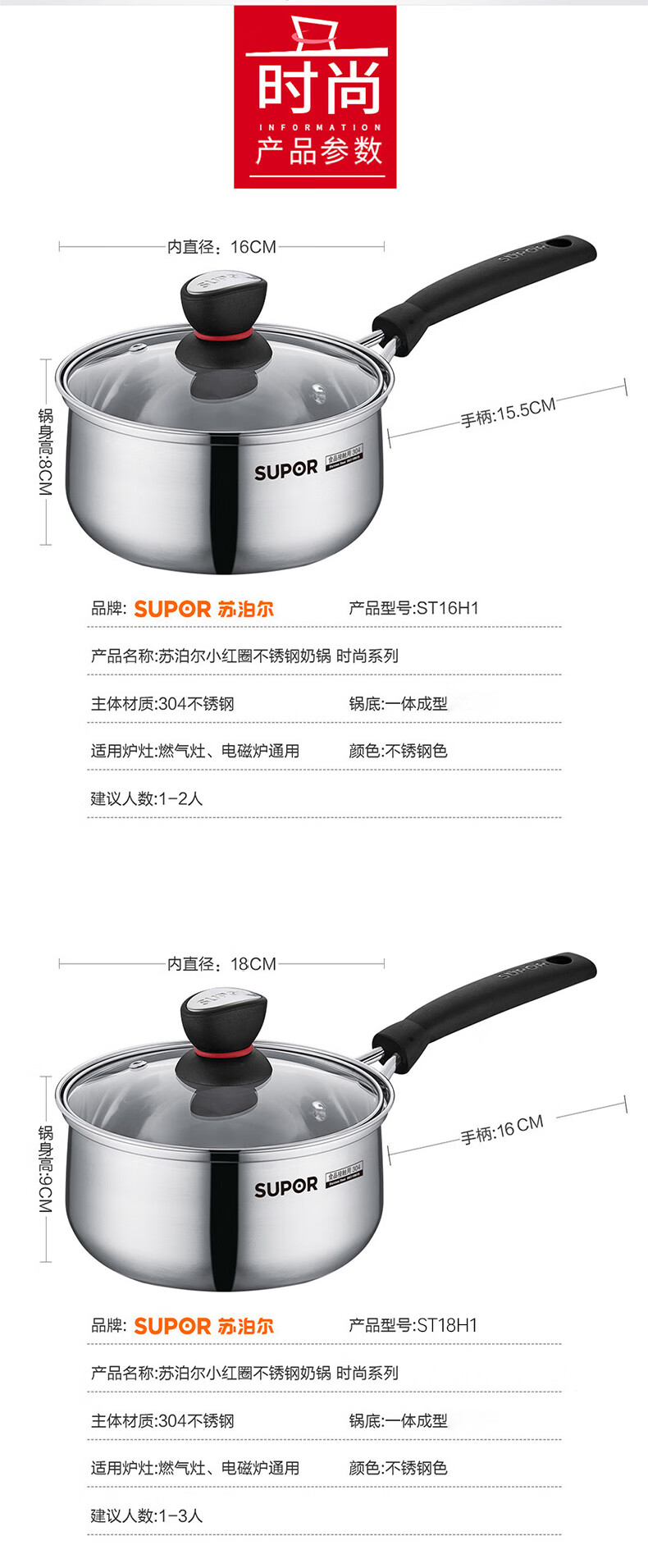 商品名称:苏泊尔(SUPOR)时尚不锈钢奶锅 ST16H1 16cm