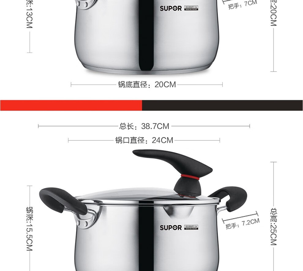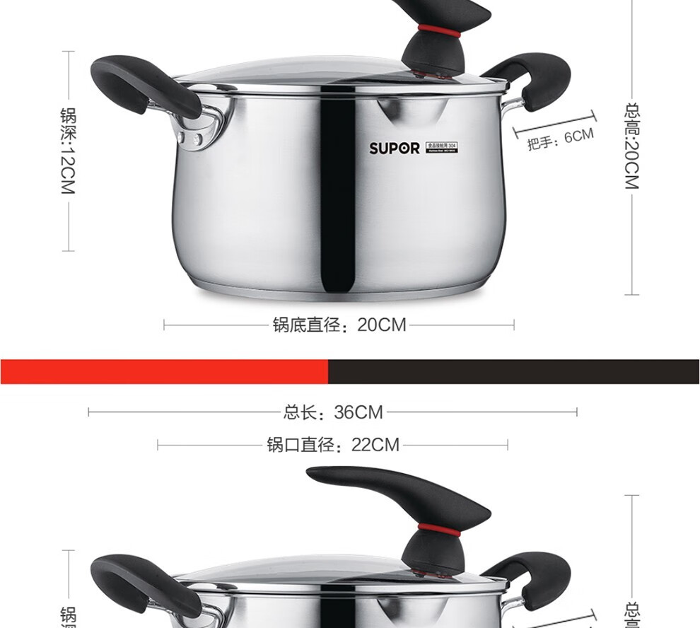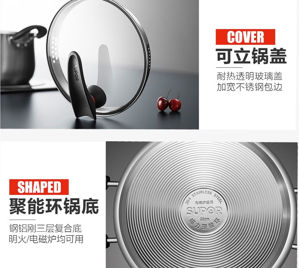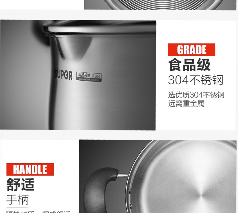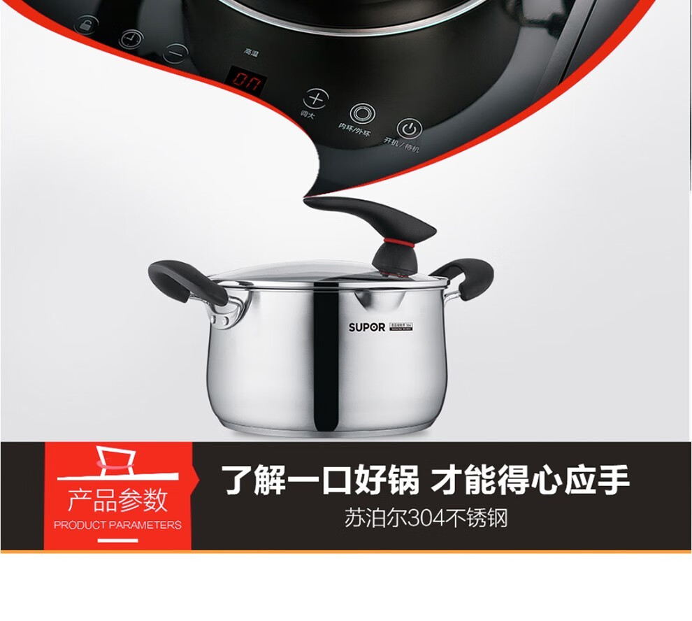 苏泊尔(SUPOR)小红圈不锈钢汤锅·巧立系列 ST22JA1 22cm