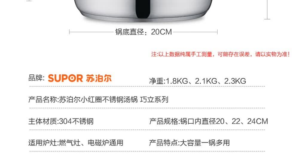 商品名称:苏泊尔(SUPOR)小红圈不锈钢汤锅·巧立系列 ST22JA1 22cm