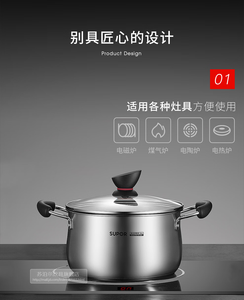 苏泊尔(SUPOR)小红圈不锈钢汤锅·精致系列 ST20Z1 20cm