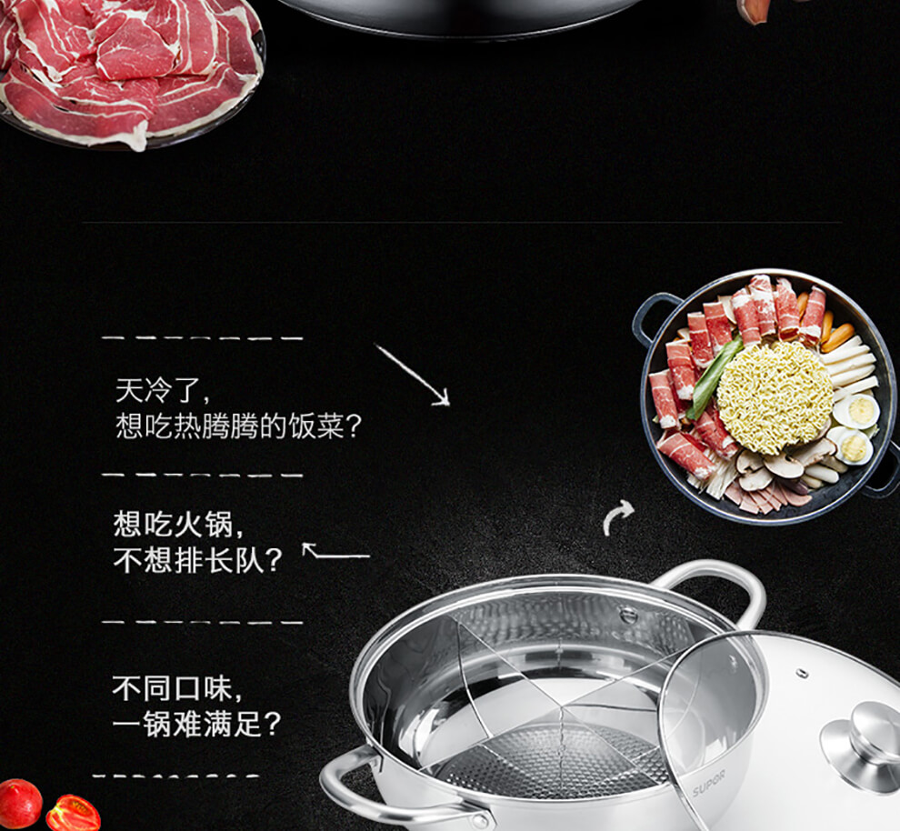 商品名称:苏泊尔(SUPOR) 精致不锈钢复底火锅 ST28Z4 28cm
